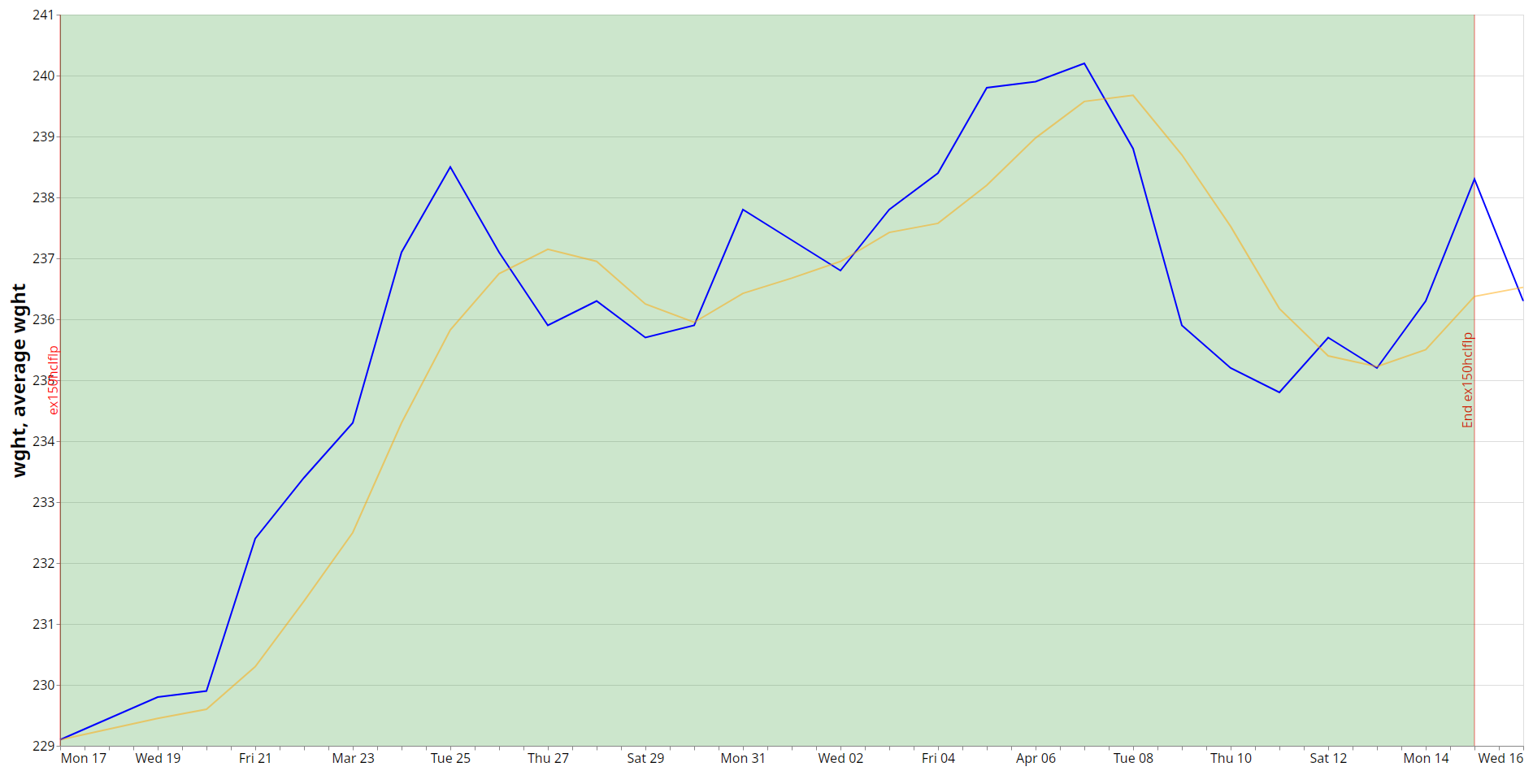 This was ex150hclflp. Here’s my weight curve from that month: