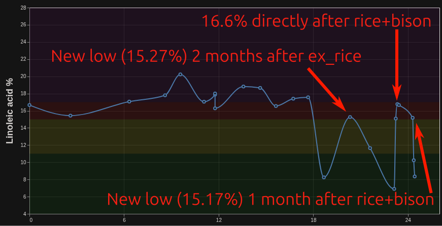 I’ll just keep monitoring it once in a while over the next few months or years to see if the linoleic acid keeps slowly dropping.