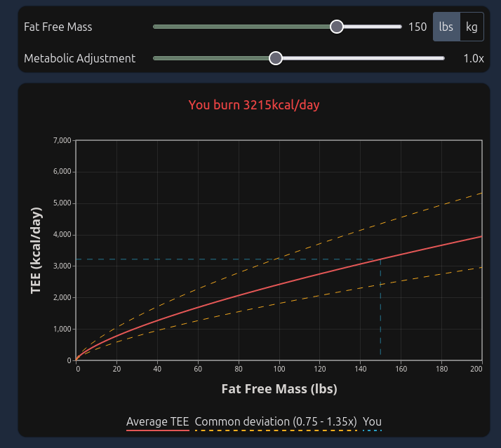 For example, clicking here should lead you to exactly the graph in the screenshot above, with 154lbs of FFM and 1.35x metabolic adjustment selected.