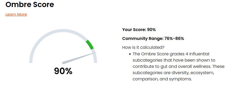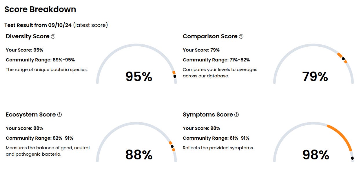 On the other hand, it’s not an objective measurement of anything, and you could massively influence your score when comparing yourself to others. This is where their community range is huge. I guess people who take poop tests are selecting themselves for having bad symptoms. People with great digestion probably don’t bother to take gut health tests.
